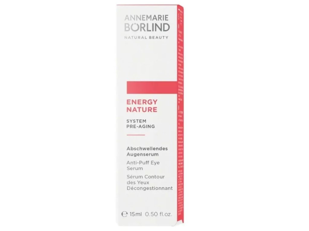 Prírodné Sérum na očné vačky ENERGYNATURE System Pre-Aging od certifikovanej prírodnej kozmetiky ANNEMARIE BÖRLIND je určené na starostlivosť o očné okolie. Vďaka svojmu unikátnemu rastlinnému zloženiu redukuje opuchy a tmavé kruhy pod očami a napomáha zlepšiť pružnosť pokožky.
