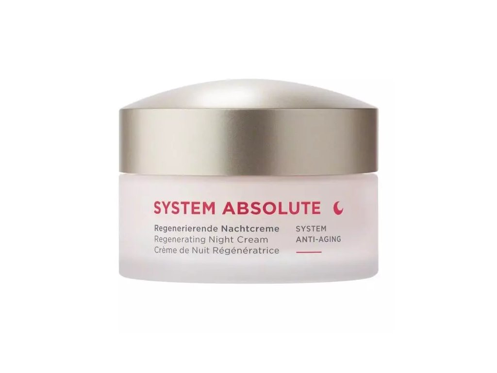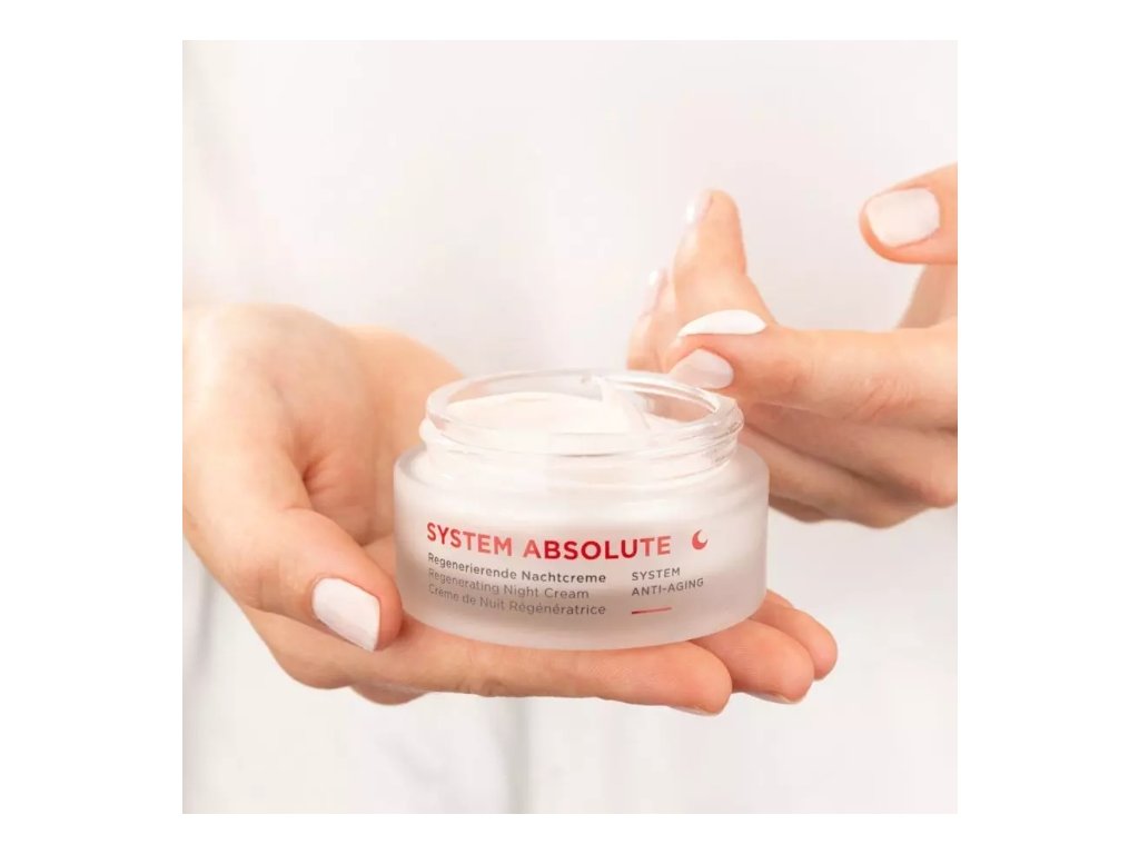 Regeneračný protivráskový nočný krém z produktovej línie System Absolute Anti-Aging od prírodnej kozmetiky ANNEMARIE BÖRLIND je určený na nočnú starostlivosť o zrelú pleť. Má intenzívny anti-aging účinok na pokožku, ktorú revitalizuje a dodáva jej stratenú vitalitu. Aktivuje produkciu kolagénu a elastínu, pleť sa vyhladí a vrásky za zmiernia. Pleť sa počas noci stáva viditeľne pevnejšou a pružnejšou. Bohatá textúra sa stará o zregenerovaný vzhľad na druhý deň ráno. Krém dokáže účinne pleť spevniť a redukovať existujúce línie a vrásky. Výsledkom je sviežejšia a hladšia pokožka.