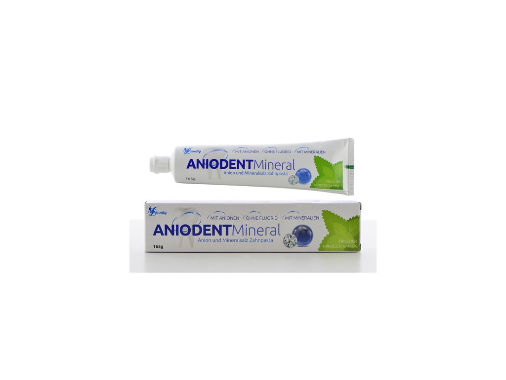 Aniodent Mineral je zubná pasta, ktorá obsahuje anióny a minerálne soli, je bez cukru a bez fluoridu. Spojením esencie naturálnych minerálnych solí a modernej technológie vám Aniodent poskytne osviežujúcu mätovú chuť, dlhotrvajúci svieži dych a mimoriadnu ochranu chrupu a ďasien prostredníctvom nanotechnologicky optimalizovanej soli a tým zaisťuje komplexnú a dlhotrvajúcu starostlivosť.