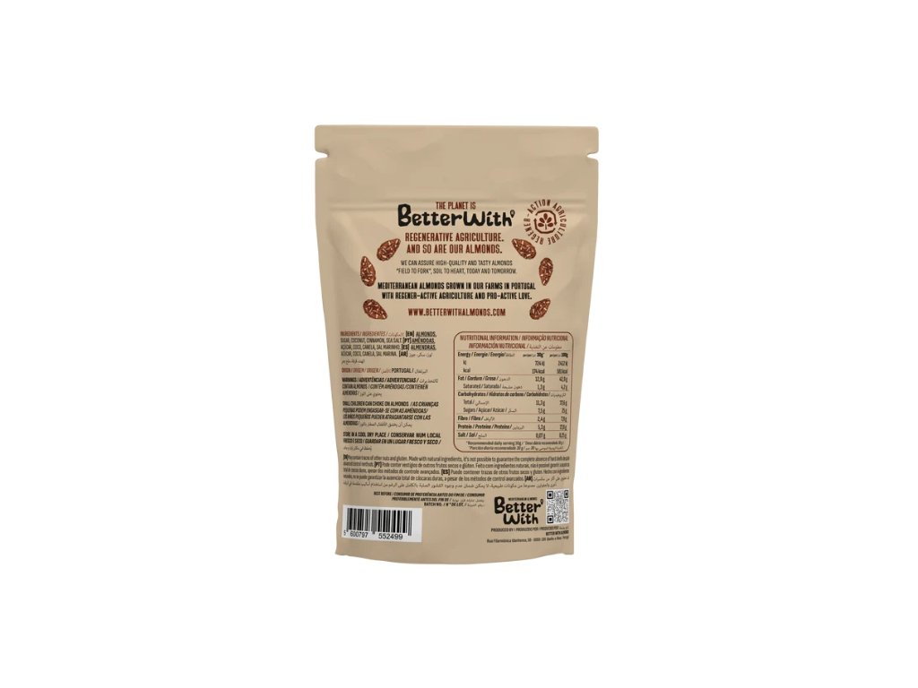 Tieto mandle pochádzajú z regeneratívneho poľnohospodárstva v Portugalsku, kde sa pestujú s rešpektom k pôde, klíme aj komunite.