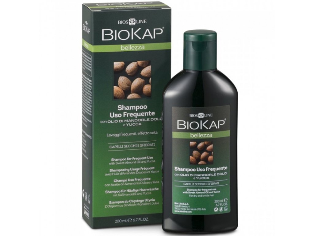 BioKap® Šampón na časté použitie s obsahom prírodného sladkého mandľového oleja, extraktu z ibišteka a rastliny yukky. Poskytuje prirodzený spôsob starostlivosti o krásu a zdravie Vašich vlasov. Receptúra je založená na báze prírodných zložiek s čistiacimi a hydratačnými vlastnosťami, zabezpečuje tak blahodárnu starostlivosť o vlasy a vlasovú pokožku. Šampón zaisťuje šetrné umývanie vlasov a pokožky hlavy, zanecháva vlasy jemné a lesklé. Zvlášť vhodný pre ľudí na časté umývanie suchých a lámavých vlasov. Vhodný pre celú rodinu. Neobsahuje PEG, silikóny, parabény, SLES (Sodium Laureth Sulfate). Testovaný na nikel. Vhodný pre vegánov. Dermatologicky testovaný.