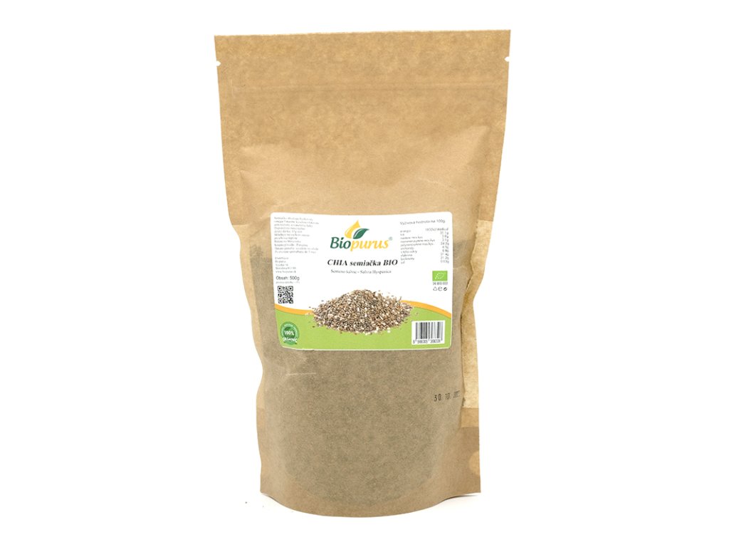 Zloženie: Chia semienka v bio kvalite z kontrolovaného ekologického poľnohospodárstva.