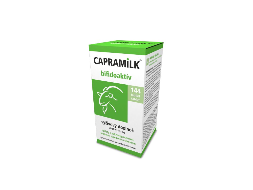 CAPRAMILK BIFIDOAKTÍV sú tablety z kozieho mlieka, ktoré obsahujú aktívnu, zdraviu prospešnú laktogénnu mikroflóru (Bifidobacterium lactis, Lactobacilus acidophilus). Použitá mikroflóra zlepšuje priebeh trávenia, zvyšuje obranyschopnosť organizmu, posilňuje imunitný systém, odstraňuje zápchu, upravuje stolicu. Pri a po liečbe antibiotikami obnovuje črevnú mikroflóru.