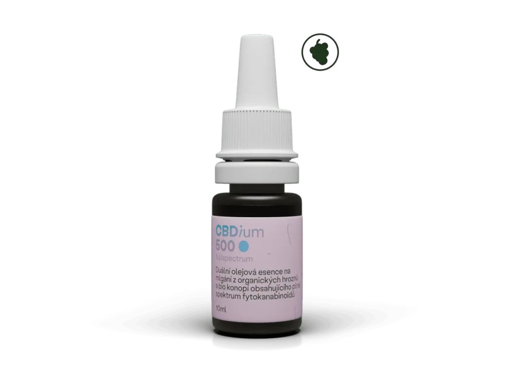 CBDium 500 fullspectrum je duálna olejová esencia z hroznového oleja a organického konopného extraktu.
