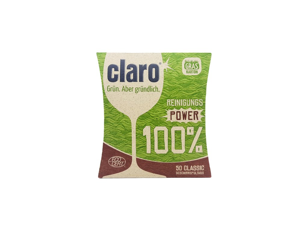 Objavte silu rakúskej kvality s ekologickými tabletami do umývačky Claro. Vďaka inovatívnemu 3-fázovému systému zabezpečia dokonalú čistotu, lesk a ochranu riadu aj umývačky – bez zbytočnej chémie. Tablety obsahujú len prírodné látky, bez farbív či aróm. Sú balené vo fólii, ktorá sa rozpustí vo vode. Kartónový obal je kompostovateľný, prípadne ho môžete zlikvidovať ako papierový odpad.