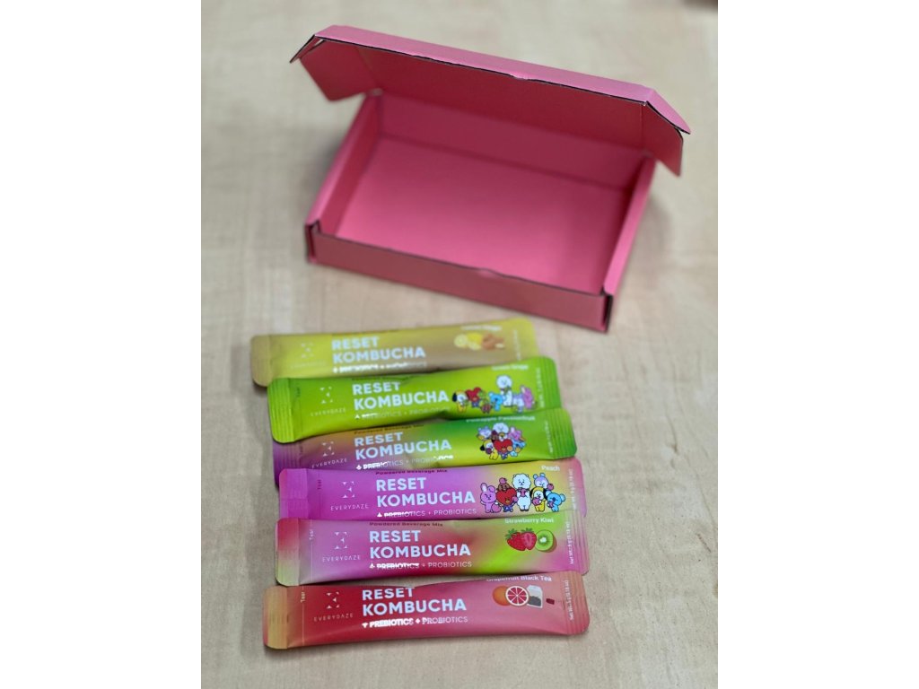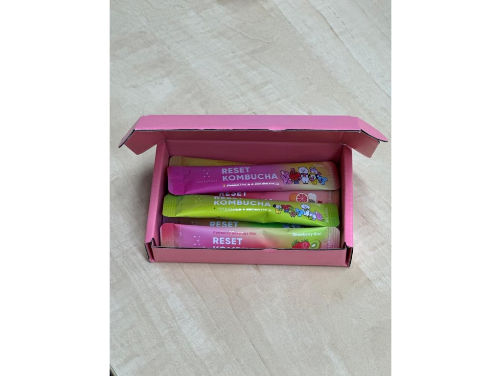 Objavte jedinečnú kombináciu probiotík a prebiotík s balíčkom 6 príchutí Everydaze Reset Kombucha. Tento práškový nápoj je ideálny na rýchle a jednoduché zlepšenie trávenia a podporu imunity. Každá dávka kombinuje výhody tradičnej kombuchy s moderným prístupom v podobe práškovej formy, ktorá je pohodlná na použitie kedykoľvek a kdekoľvek.