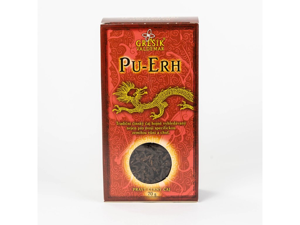 Pravý čierny čaj. Tradičný čínsky čaj veľmi vyhľadávaný nielen pre svoju špecifickú zemitú vôňu ale aj chuť. Zloženie: pravý čierny čaj Pu-Erh
