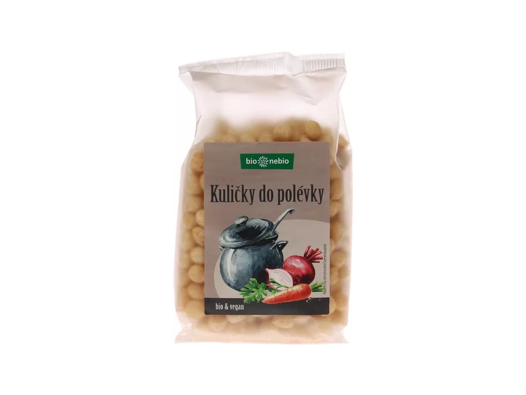Obľúbená súčasť polievky, hlavne pre malé deti, alebo pre tých, ktorý majú radi chrumkanie aj pri polievke. Tieto malé guličky sú bez palmového oleja a sú vhodné aj pre vegánov. Všetky zložky sú z ekologického poľnohospodárstva.