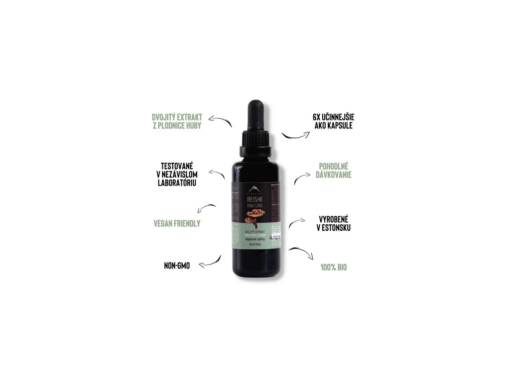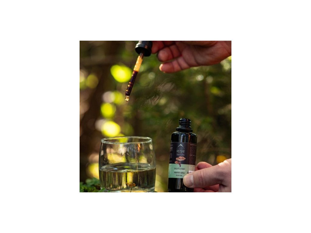 Plodnice Reishi pochádzajú z biodynamického poľnohospodárstva v Estónsku a sú spracovávané metódou dvojitej extrakcie (alkohol, voda) pre maximálne zachovanie biologicky aktívnych látok. Celý proces prebieha ručne v malých várkach, s dôrazom na čistotu huby a špičkovú kvalitu každej fľaštičky, aby ste z jej účinkov získali maximum.