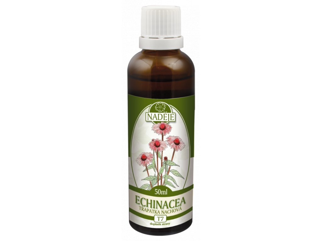 Tinktúra z echinacey. Podpora prirodzenej obranyschopnosti, blahodarné pôsobenie na dýchacie a močové cesty.
