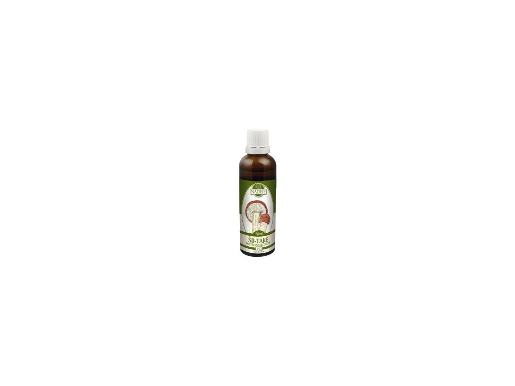 Tinktúra z huby šii-take, alebo húževnatca jedlého. Široko využívaná huba, ktorej priaznivé účinky na zdravie sú intenzívne študované najmä v Japonsku.