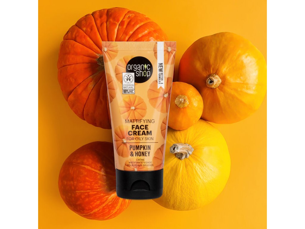 Jeho ľahké, nemastné zloženie sa rýchlo vstrebáva a zanecháva pokožku hladkú, matnú a vyváženú. Organický tekvicový olej a med sú známe svojimi výživnými a regulujúcimi vlastnosťami. Med poskytuje antibakteriálne vlastnosti a pomáha upokojiť pokožku. Olej zo semien Cucurbita Pepo (tekvica) je bohatý na vitamíny a minerály, reguluje produkciu mazu a podporuje obnovu kožných buniek. Krém účinne bojuje proti nadmernému lesku a pomáha kontrolovať produkciu kožného mazu, čím zanecháva vašu pokožku hladkú, matnú a dokonale vyživenú.