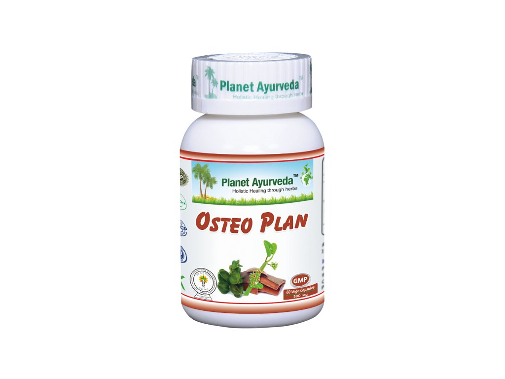 Byliny obsiahnuté v ajurvédskej zmesi Osteo Plan majú protizápalový a analgetický účinok (pôsobia proti bolesti). V ajurvéde sa odporúčajú pri pohybových problémoch, na úľavu od bolesti kĺbov ako aj na bolesť chrbtice, bolesť krčnej chrbtice, bolesť členkov a opuch kĺbov. Byliny v Osteo Plan sú bohaté na antioxidanty, vďaka čomu pôsobia pozitívne proti degeneratívnym zmenám. Pomáhajú znovuobnoviť osteocyty (kostné bunky) a podporujú správnu lubrikáciu kĺbov. Sú tiež bohatým prírodným zdrojom vápnika.