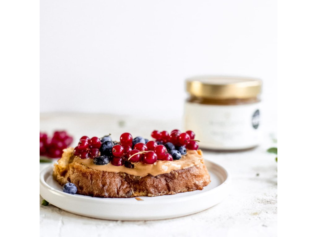 Okrem skvelej chuti je zdrojom kvalitných tukov, proteínov a minerálov. Dve lyžičky na raňajky Vám dodajú energiu na celý deň. Skvelý na palacinky, do smoothies, s banánom, do jogurtu alebo len tak lyžičkou pre potešenie.