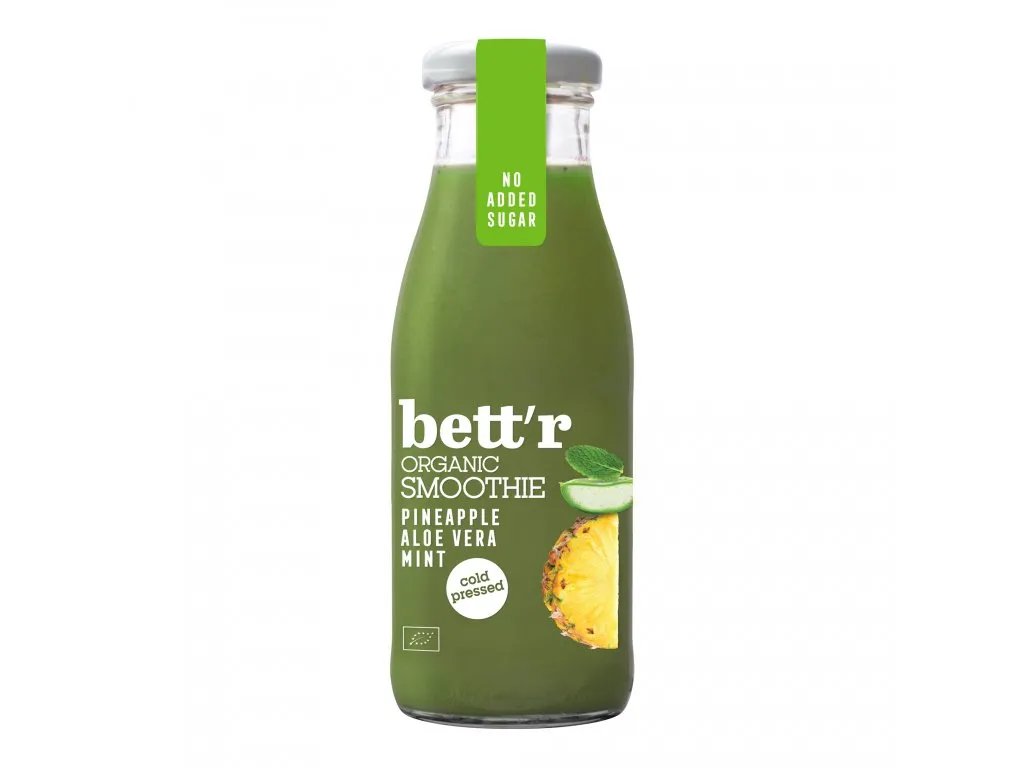 Zloženie: Za studena lisovaná jablková šťava*, ananásová šťava* (35%), gél z aloe vera* (8%), banánové pyré*, mäta*, spirulina, antioxidant: kyselina askorbová. *BIO Na priamu konzumáciu.