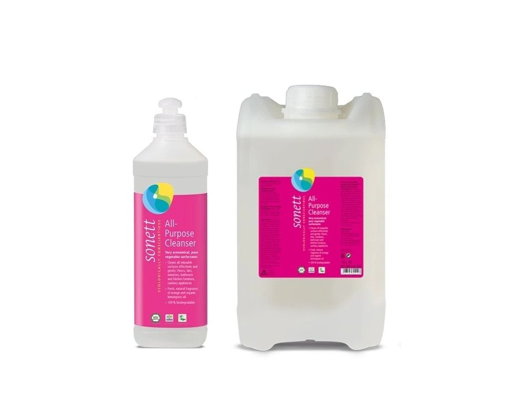 Tento ekologický univerzálny čistič od značky Sonett účinne odstraňuje mastnotu a nečistoty z rôznych povrchov v domácnosti. Je ideálny na podlahy, dlaždice, kuchynský nábytok, okná aj kúpeľňovú sanitu. Vďaka zloženiu na rastlinnej báze je šetrný k pokožke, zdravý pre domácnosť a zároveň šetrný k životnému prostrediu. Svieža citrusová vôňa pochádza z prírodných esenciálnych olejov z pomaranča a citrónovej trávy.