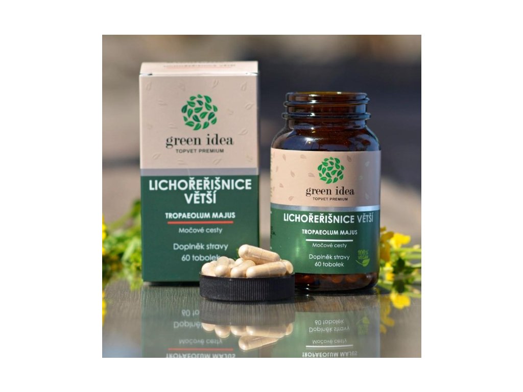 Zloženie: Kapucínka väčšia 250 mg (Tropaeolum majus) štandardizovaný extrakt z celej rastliny (10:1), vitamín C 100 mg (kyselina L-askorbová), mikrokryštalická celulóza (plnidlo), stearan horečnatý (plnidlo), vegetariánska kapsula
