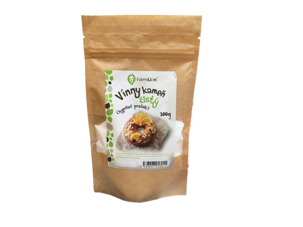 Vinný kameň je vedľajší produkt, ktorý vzniká pri výrobe vína ( ide o draselnú soľ kyseliny vínnej). Tento prášok stabilizuje bielkoviny, zvýšiť objem cesta a tvoriť štruktúru hotového výrobku. Na rozdiel od bežného prášku do pečiva neobsahuje difosforečňany, látky ktoré sú zdrojom fosforu. Jeho nadbytok môže narušiť v tele rovnováhu medzi vápnikom a fosforom a zapríčiniť tak nedostatok vápnika v tele a úbytok kostnej hmoty.