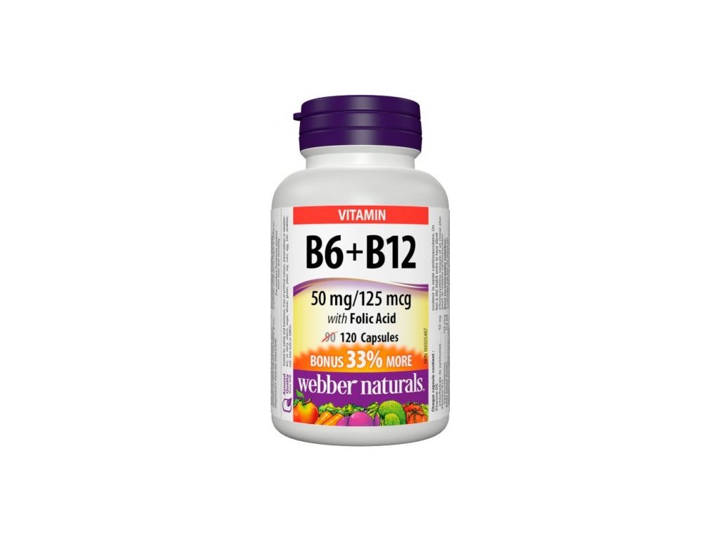 Webber Naturals Vitamín B6+B12+Folic Acid 50 mg 120 kapsúl